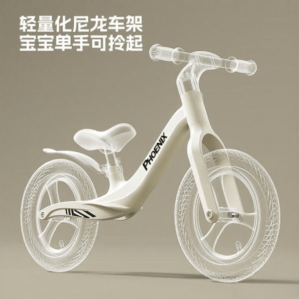 凤凰儿童平衡车采用尼龙玻纤车架,挺轻的,整体才3.8公斤左右,防摔性好,方便宝宝轻松掌控。配备的软皮革座椅舒适耐用,座椅高度能调节,适合不同阶段的孩子坐着骑,符合人体工学设计,基本能保证腿部活动灵活且安全。车把还能拆卸,方便携带和存放。